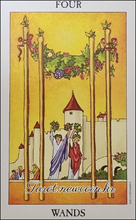 애정운: Four of Wands (완드 4) 애정운은 축제 분위기입니다! 완드 4가 나왔으니 집에서도 작은 파티를 즐겨보세요. "오늘 저녁에 연인과 함께 거실에서 넷플릭스 마라톤을 할 계획이라면, 팝콘과 피자, 그리고 따뜻한 이불을 준비해보세요. 마음까지 따뜻해질 거예요!"