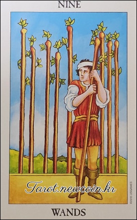 - 3번 카드 (주의할 일): Nine of Wands (완드의 9)